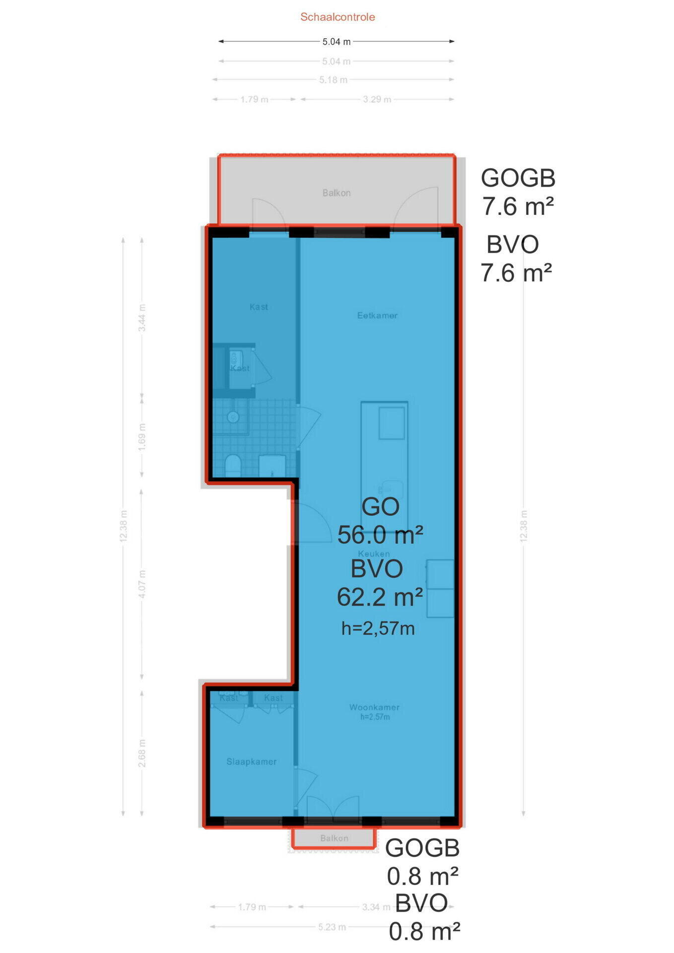 - Appartementsrecht, 56 m² (meetrapport aanwezig).